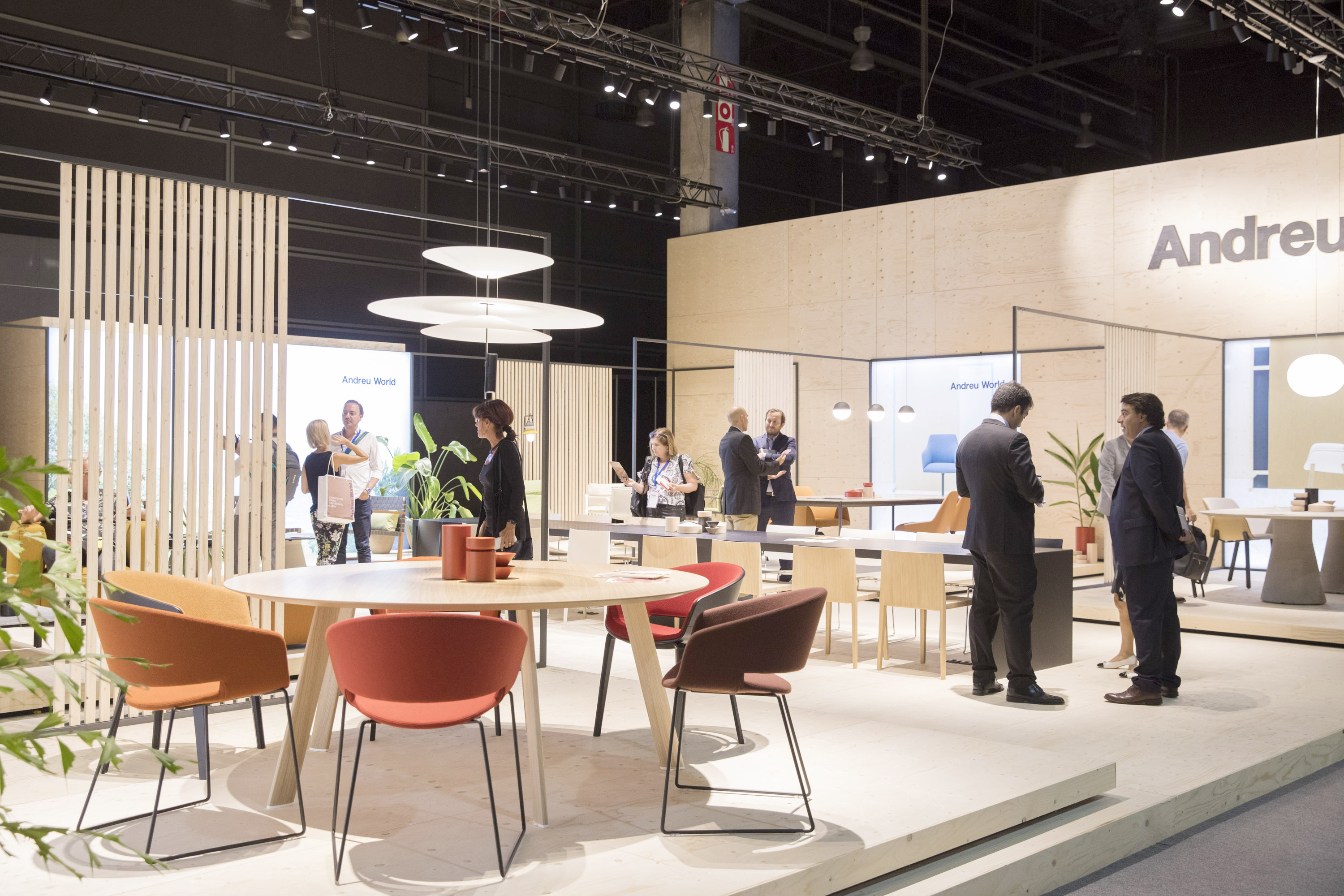 En réalité, la volonté d’accrocher l’économie du meuble est clairement affichée. La Feria cherche à promouvoir l’industrie ancestrale de la région, en la débarrassant de toute identité désuète. Les espagnols l’on bien compris, seule la créativité et la recherche peuvent sauver les industriels qui prétendent s’exporter. Pour cela, une seule solution : s’adresser aux architectes et designer de renom et les faire travailler avec les artisans. Pari réussi avec un investissement dans les idées. Le fabricant est gagnant dans une valeur ajoutée indéniable, les industriels se nourrissent de cette créativité pour créer un monde raffiné comme celui de Andreu world. Campé dans un quartier résidentiel huppé, il n’hésite pas à recevoir les journalistes dans le jardin magnifique de son show room. Après les paroles éloquentes du directeur de design, ses caresses sur les meubles (impeccables dans leurs finitions), le propriétaire de cet empire du meuble de bureau descend dans l’arène pour répondre aux questions. La scénographie est étudiée dans les moindres détails.